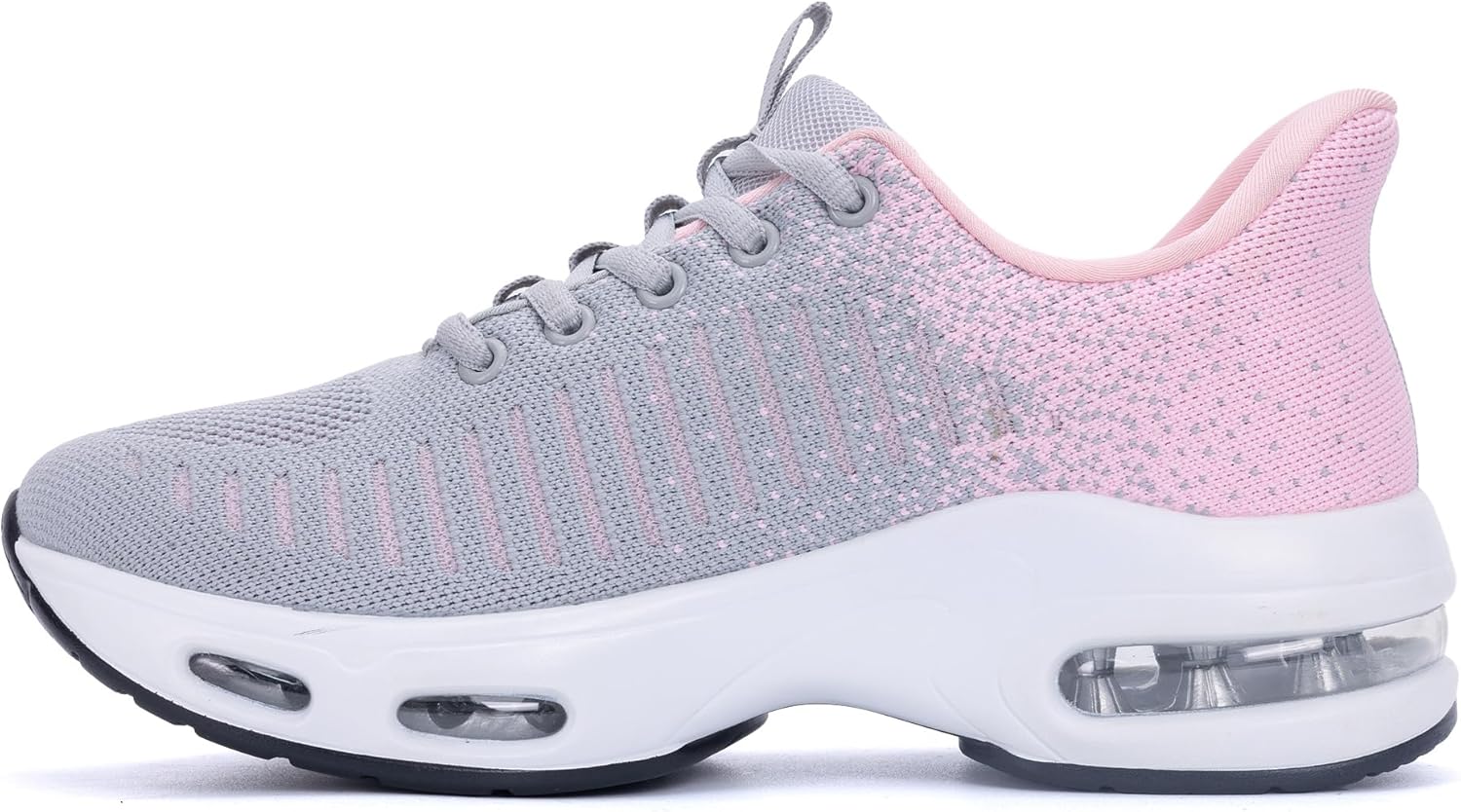 Women's Walking Shoes Slip On Tennis Sneakers Easy Put On Athletic Shoes for Ladies GreyPink US 10