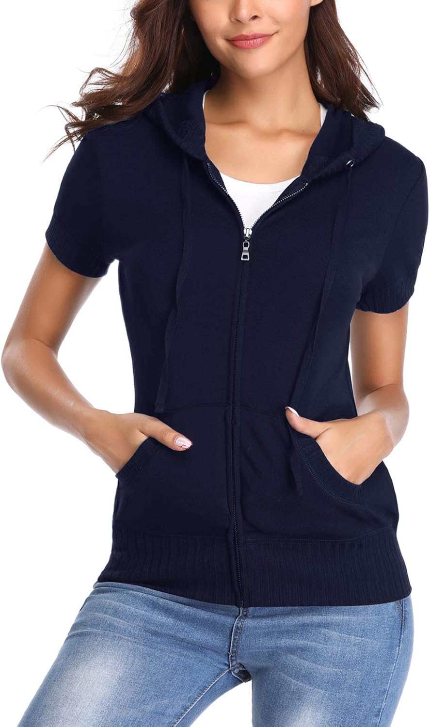 MISS MOLY Women's Zip Up Hoodie Short Sleeves Hooded Jacket Casual Lightweight Sweatshirt with Pockets