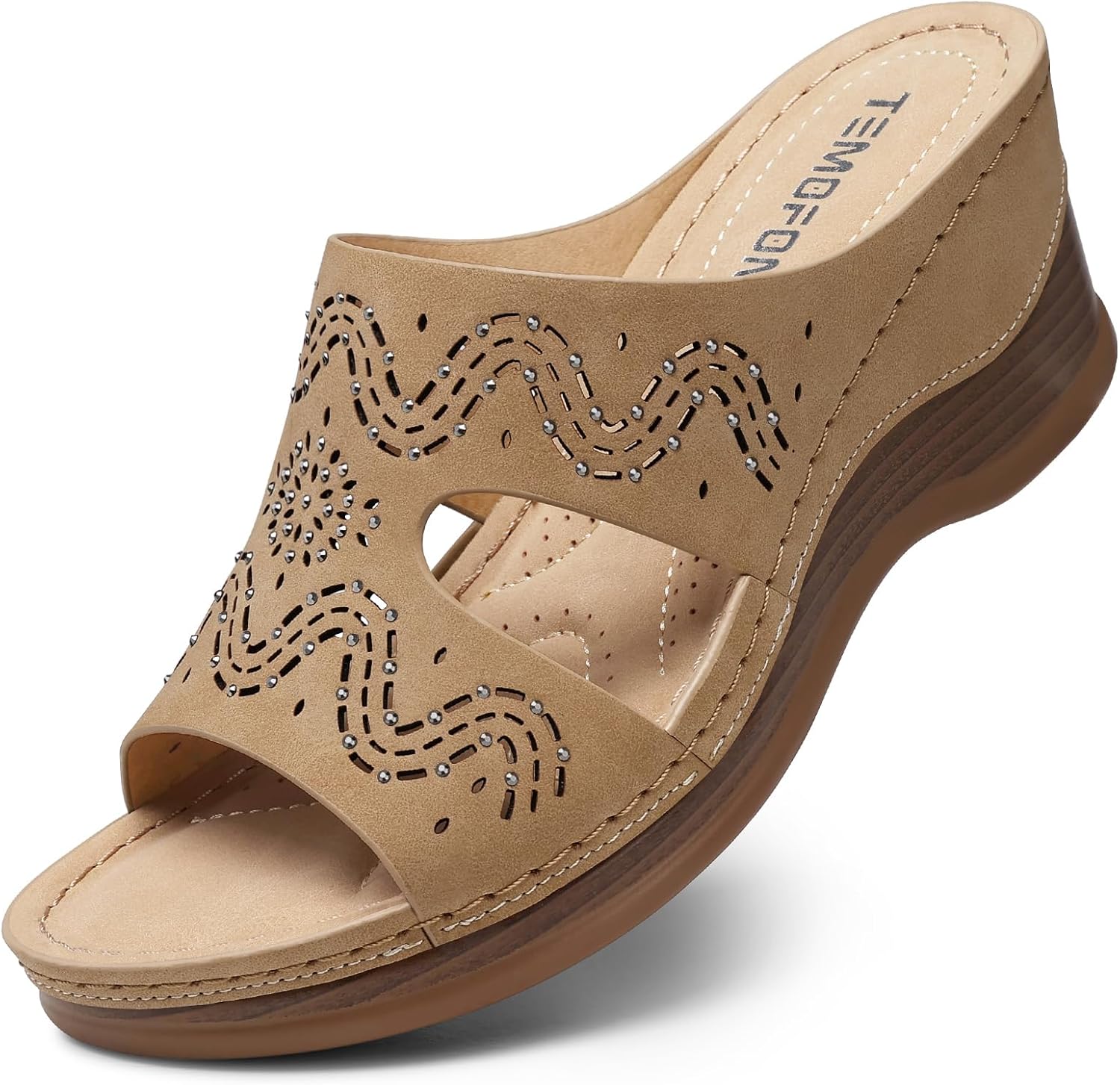 TEMOFON Women Wedge Sandals Summer: Walking Comfortable - Tan Platform Womens Casual Sandal - Dressy Sandals Wide Size 6