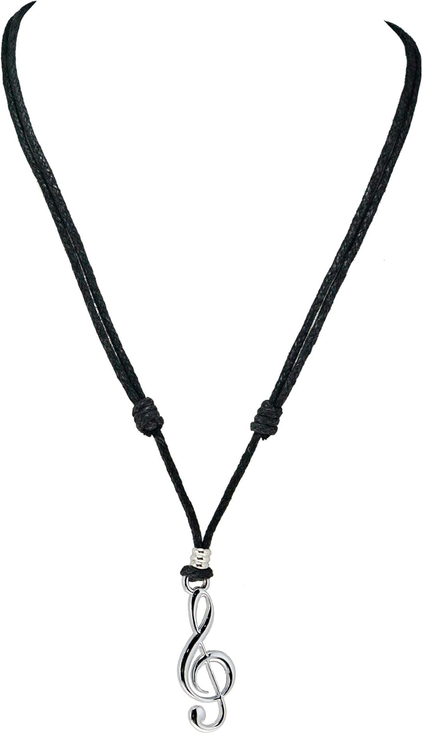 BlueRica Treble G Clef on Adjustable Black Cord Necklace (Chrome Finish)