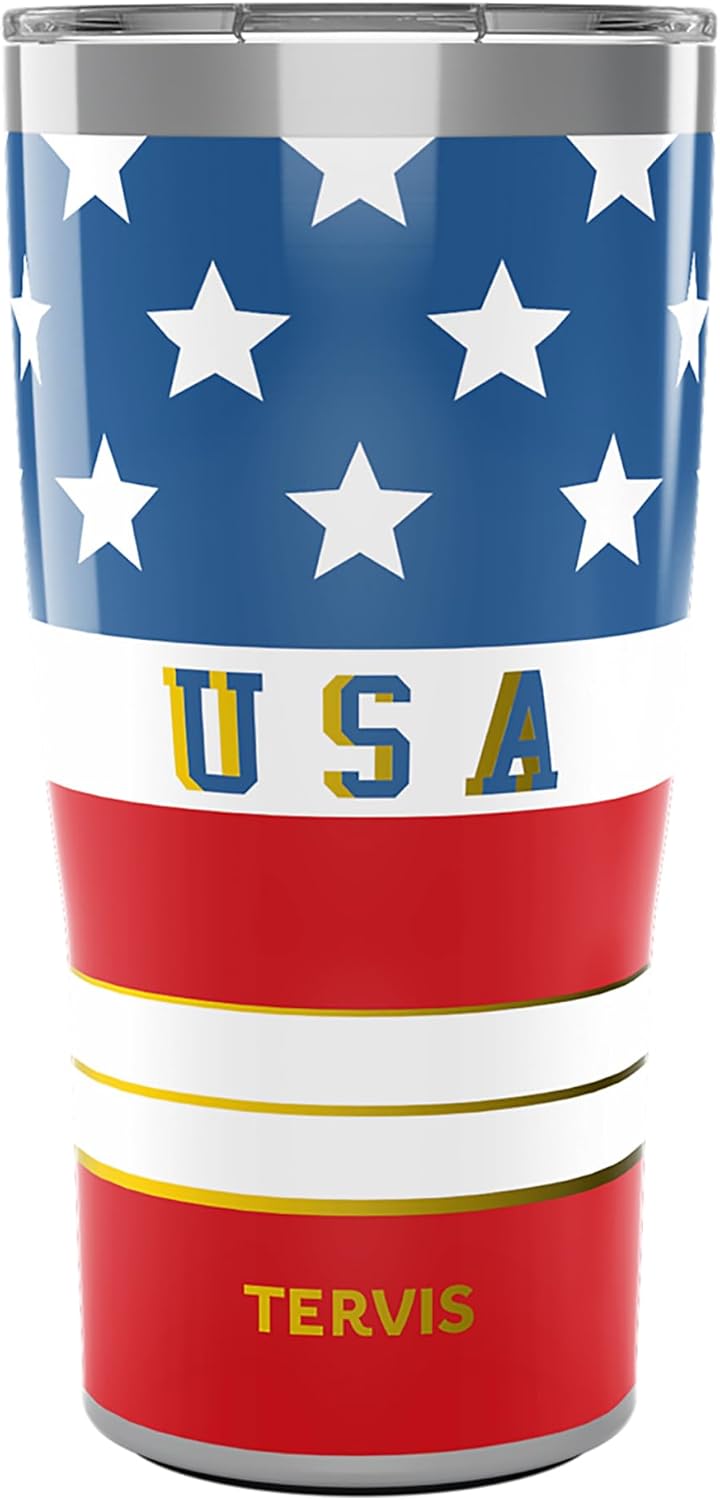 Tervis Traveler USA - Play The Anthem Triple Insulated Tumbler Travel Cup Keeps Drinks Cold & Hot, 20oz, Stainless Steel