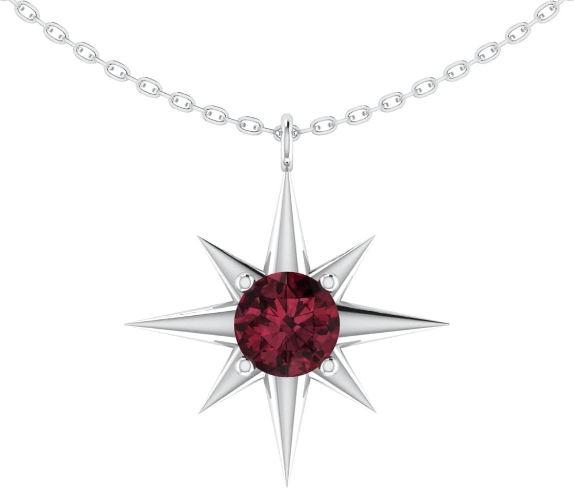 Sterling Silver North Star Pendant with a Birthstone, Birthstone Gift For Her, Silver Jewelry with 18 Inch Chain