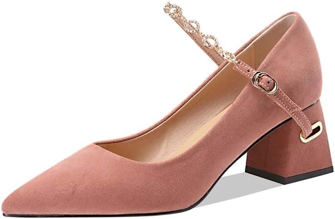 TinaCus Women's Suede Leather Handmade Comfortable Mid Chunky Heel Pointed Toe Graceful Mary Jane Pump Shoes with Buckle (Light Pink, US6.5)