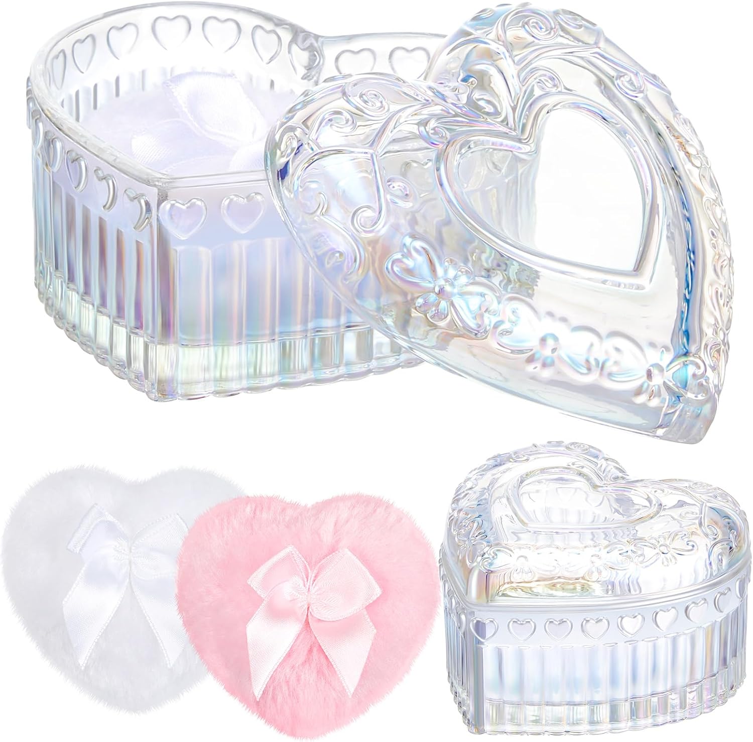 Tioncy 3 Pcs Large Body Powder Puff and Container Valentine's Day gift Powder Container with Puff Crystal Case Soft Washable Reusable Velour Face Body Glitter Wet Dry Makeup(Heart,Glitter)