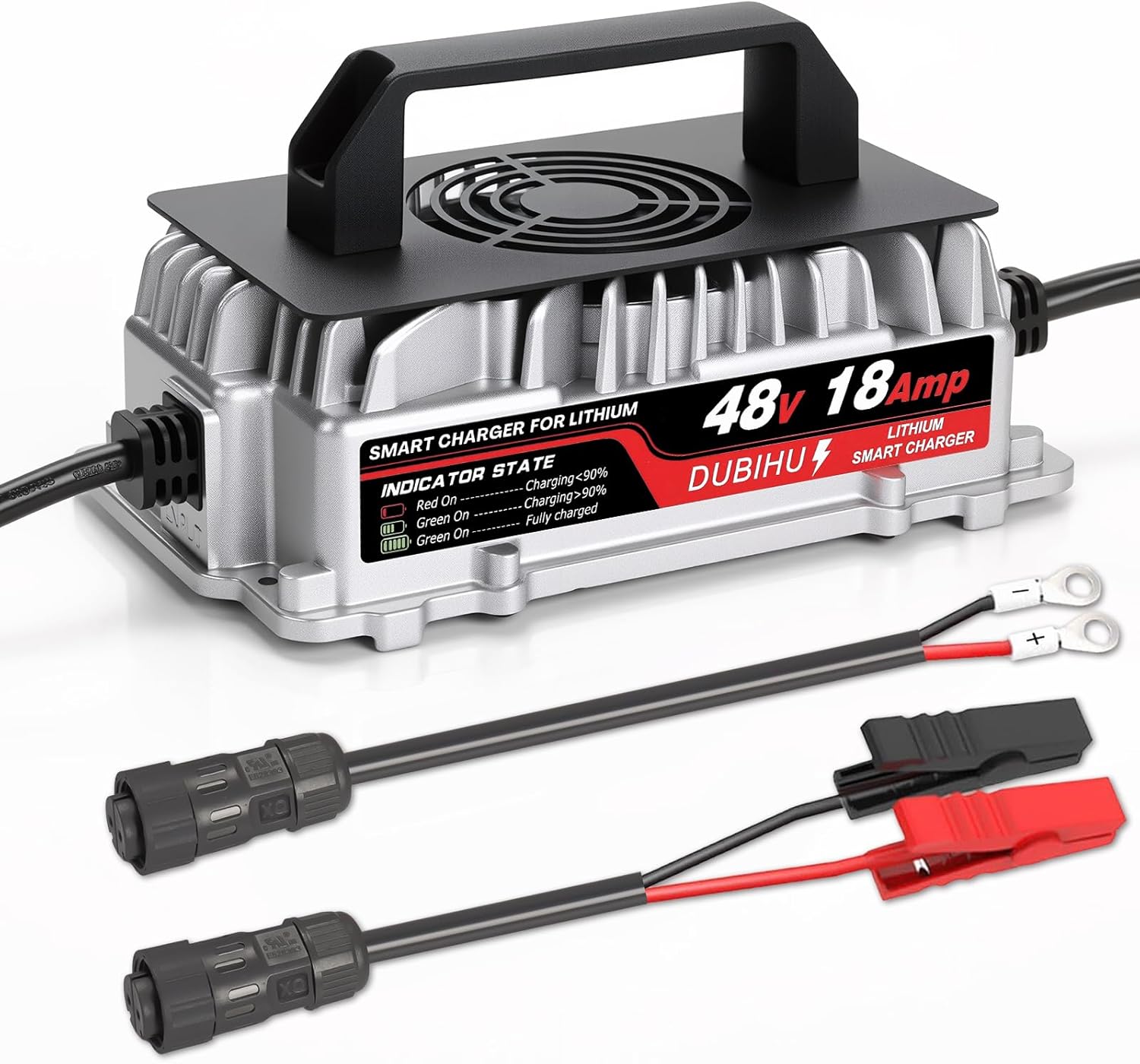 - [Fast Charging for 48V LiFePO4 Batteries]:This 58.4V 18A lithium battery charger is engineered for 48V (51.2V) LiFePO4 batteries, offering reliable, high-speed charging for golf carts, RVs, and 48V trolling motors.
