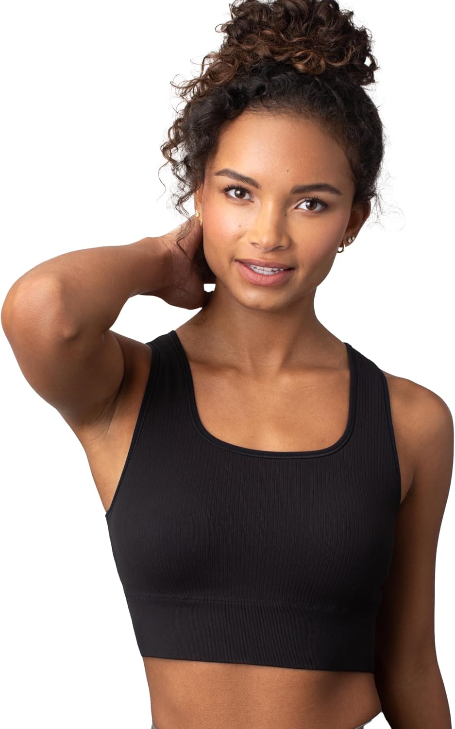 Floatley Seamlessly Square Neck Longline Easy Pullover Medium Impact Sports Bra Comfort Wirefree with Embedded Pads for Women