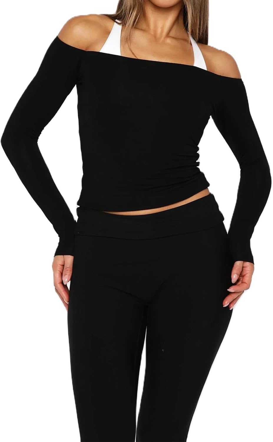 Womens Off The Shoulder Long Sleeve Workout Tops Going Out Y2k Active Streetwear Gym Shirts Without Straps