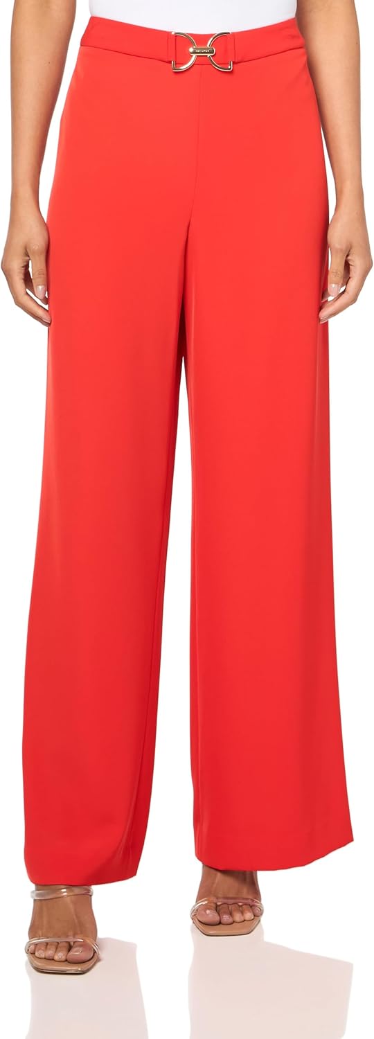 HALSTON Womens Gold Belt Straight Leg Soft Suiting Pant