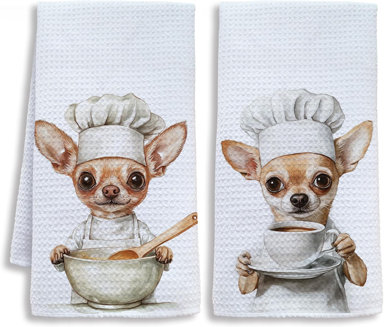 Funny Chef Chihuahua Kitchen Towels, Chihuahua Gifts for Women Dish Tea Towels for Kitchen, Gifts for Chefs Coffee Lovers Decorative Hand Towel, 16x24 Inch Set of 2