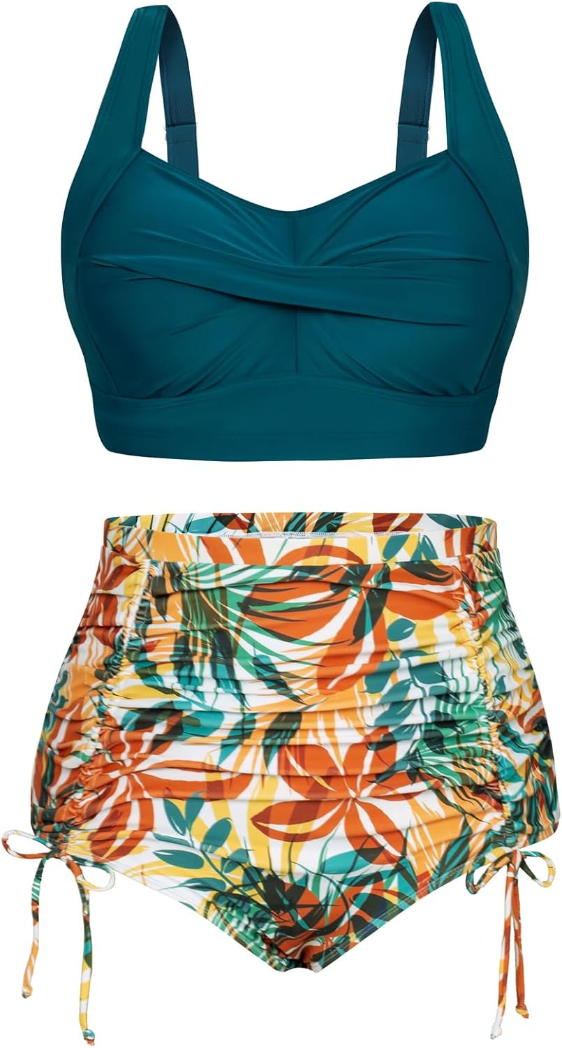 Hanna Nikole Women Plus Size Two Piece Swimsuit Sets Twist Front Bikini Bathing Suit with Drawstring Ruched Bottom