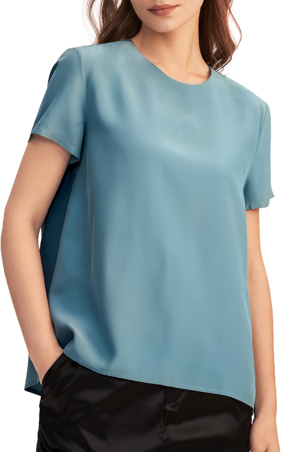 LilySilk Silk Blouses for Women Short Sleeve 100 Pure Mulberry 22 Momme Ladies Silk Tops Button Slit Back Closure