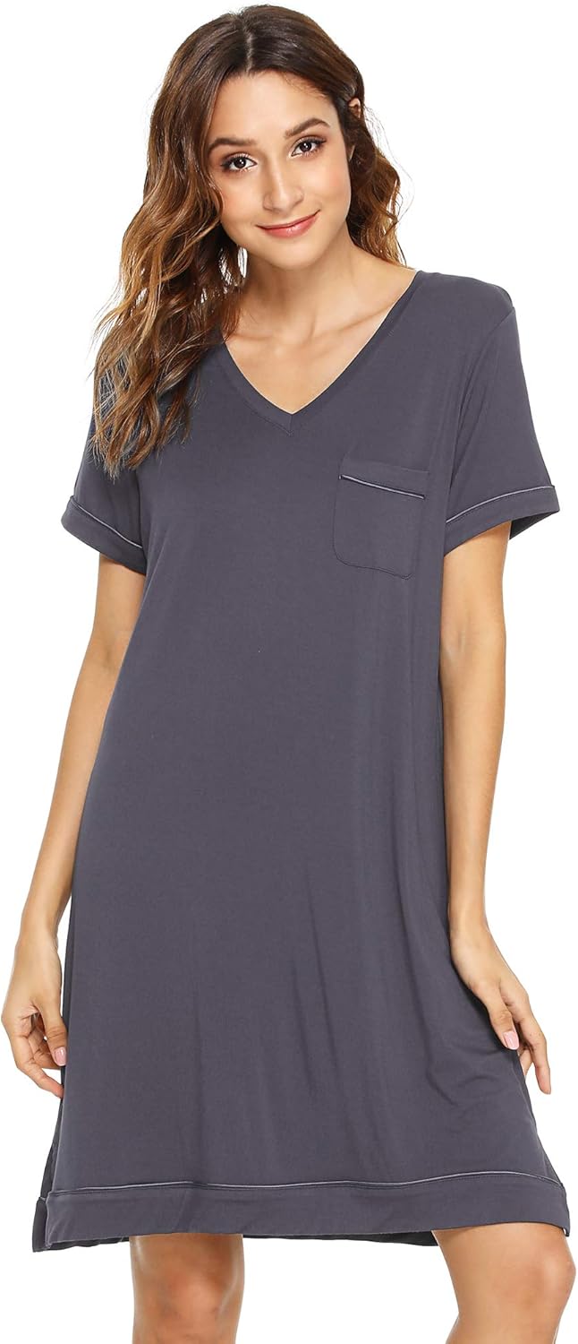 WiWi Viscose from Bamboo Nightgowns for Women Short Sleeve Sleep Shirt V Neck Nightgown Plus Size Sleepwear S-4X,