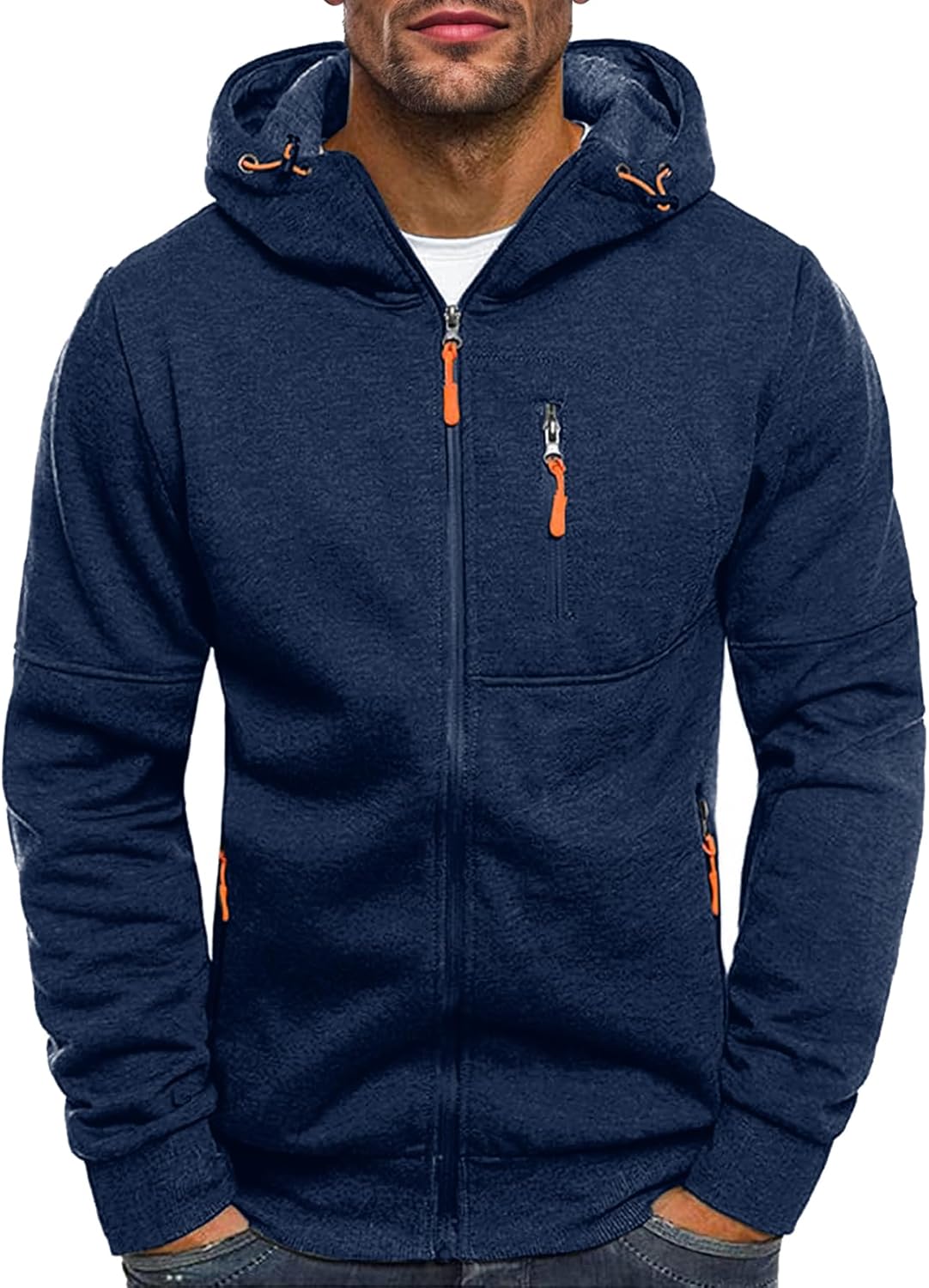 Kroivil Men Hoodies Casual Hoodies for Men with Zip Pockets Full Zip Long Sleeve Sweatshirt Sports Hooded Jacket