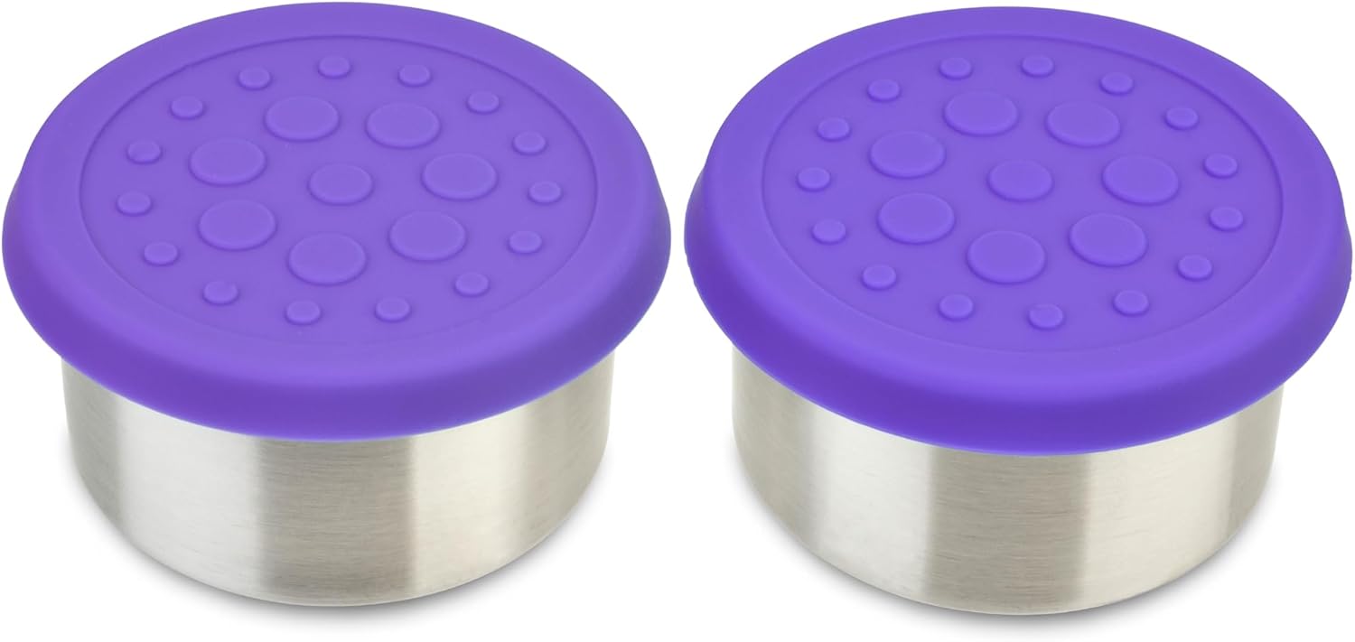 LunchBots 4.5 oz Stainless Steel Dressing Container for Condiments, Dips, Snacks, Dipping Sauce Cups with Silicone Lid, Fits in Lunch Bags and Bento Boxes - Set of 2 (Purple)