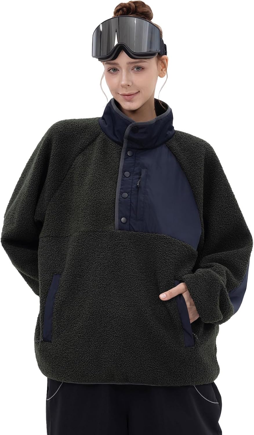 SNOWVERB Womens Mens Fleece Sherpa Snow Jackets Warm Streetwear Ski Coat Button Down Fuzzy Fleece Snowboard Jacket
