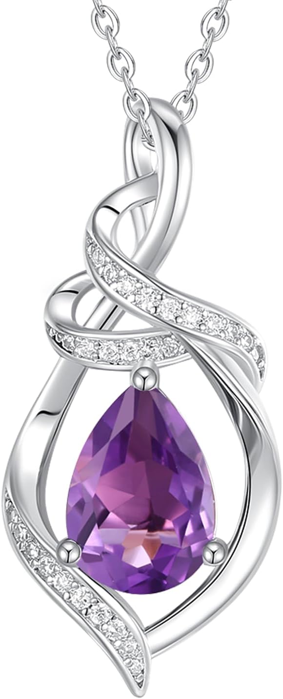 FANCIME Teardrop Gemstone Necklace for Women S925 Sterling Silver Elegant Ribbon Pendent Birthday Gifts for Her, 16"+2" Inches