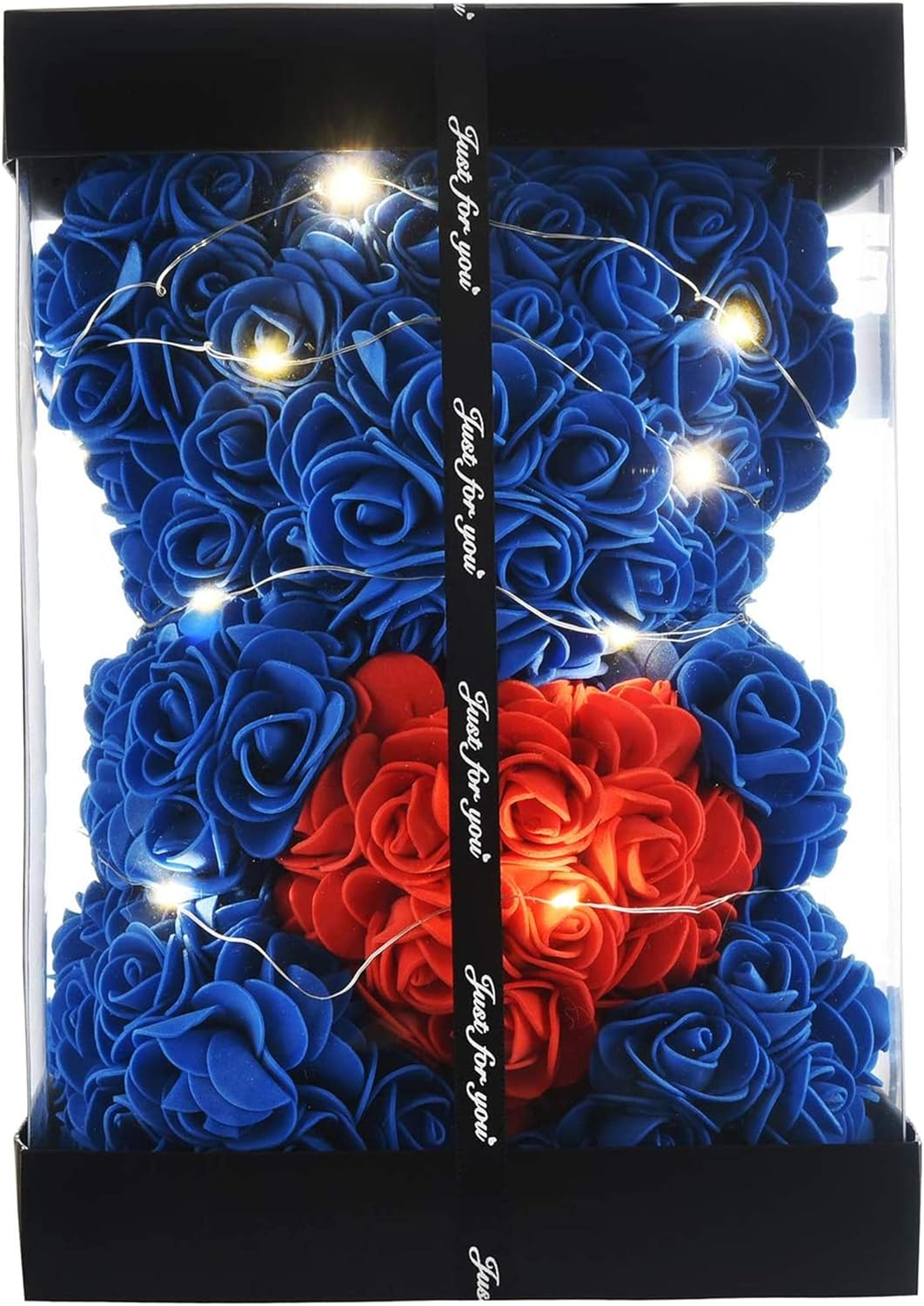 Rose Flower Bear-Hand Made Rose Teddy Bear,Best Artificial Decoration Gifts for mom, Girls,Unique,Birthday Gifts,The Perfect Party Clear Box (Royal Blue)