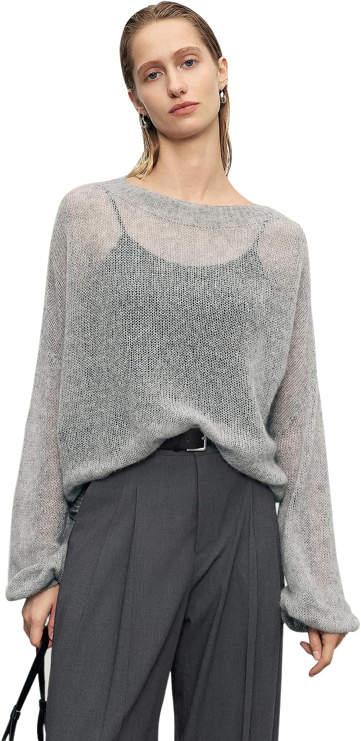 Women’s Cashmere-Silk Relaxed Fit Sweater, Soft Lightweight Crewneck Pullover Knit Top for Everyday Comfort