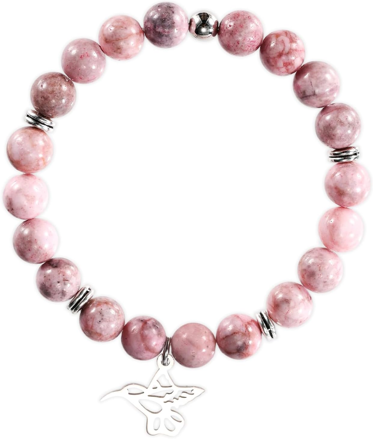 Hummingbird Bracelet for Women, Pink and Purple Stone Bead Bracelet with Hummingbird Charm Inspirational Jewelry with Card for Women Gift