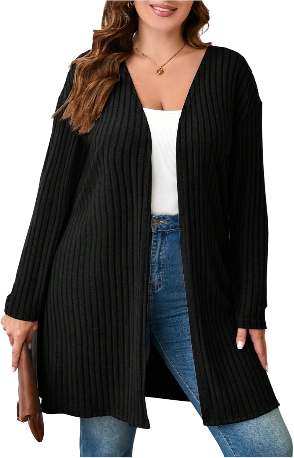 SHENHE Women's Plus Size Open Front Long Cardigan Lightweight Ribbed Knit Soft Sweater Coat