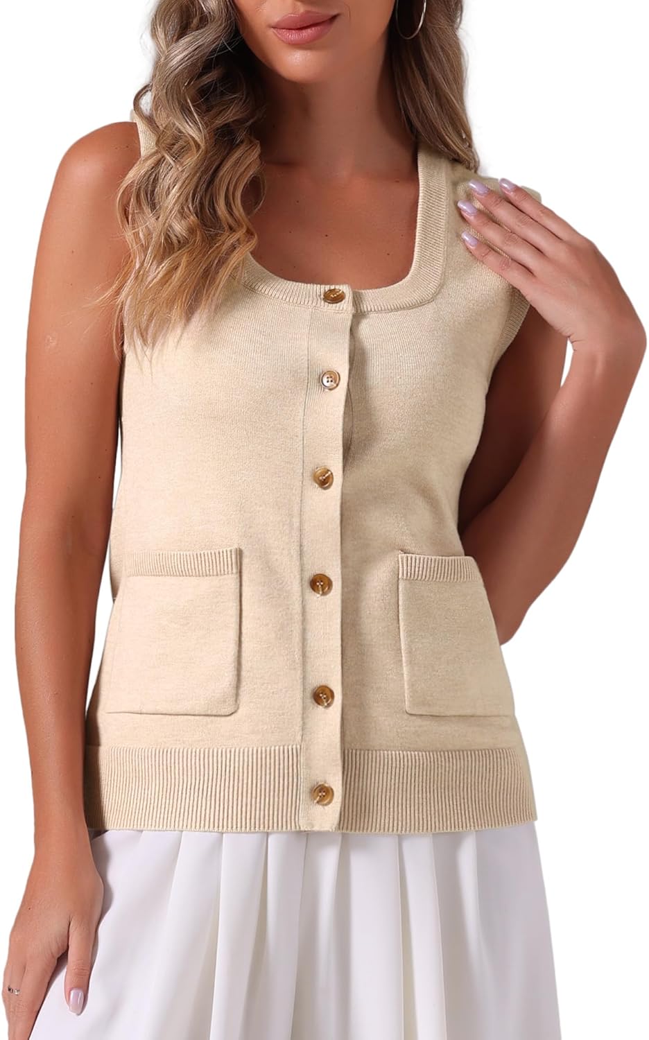 Allegra K Sweater Vest for Women's Summer Casual Button Ribbed Sleeveless Knitted Tank Top