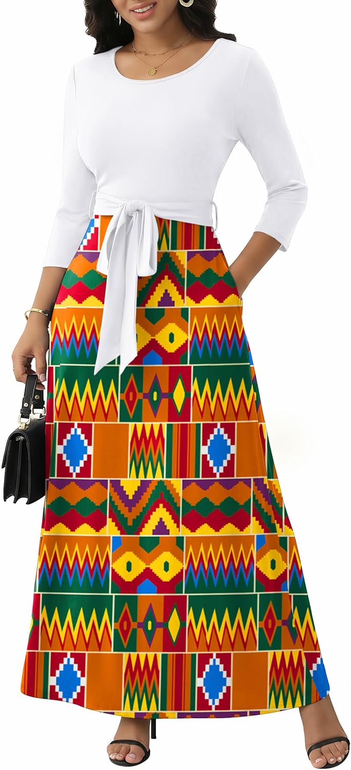 FANDEE Long Dress for Women Casual African Print Empire Waist Maxi Dresses for Wedding Guest, Church, M-3XL