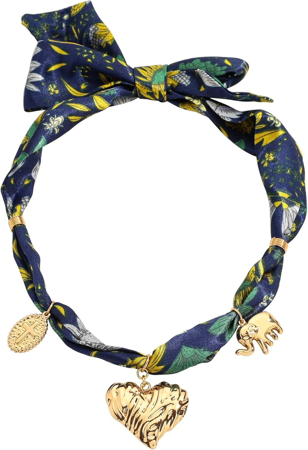 Scarf Necklace for Women Gold Dainty Bandana Necklace with Charm Heart Cross Elephant Pendants Boho Summer Beach Necklace Trendy Vacation Jewelry Gift