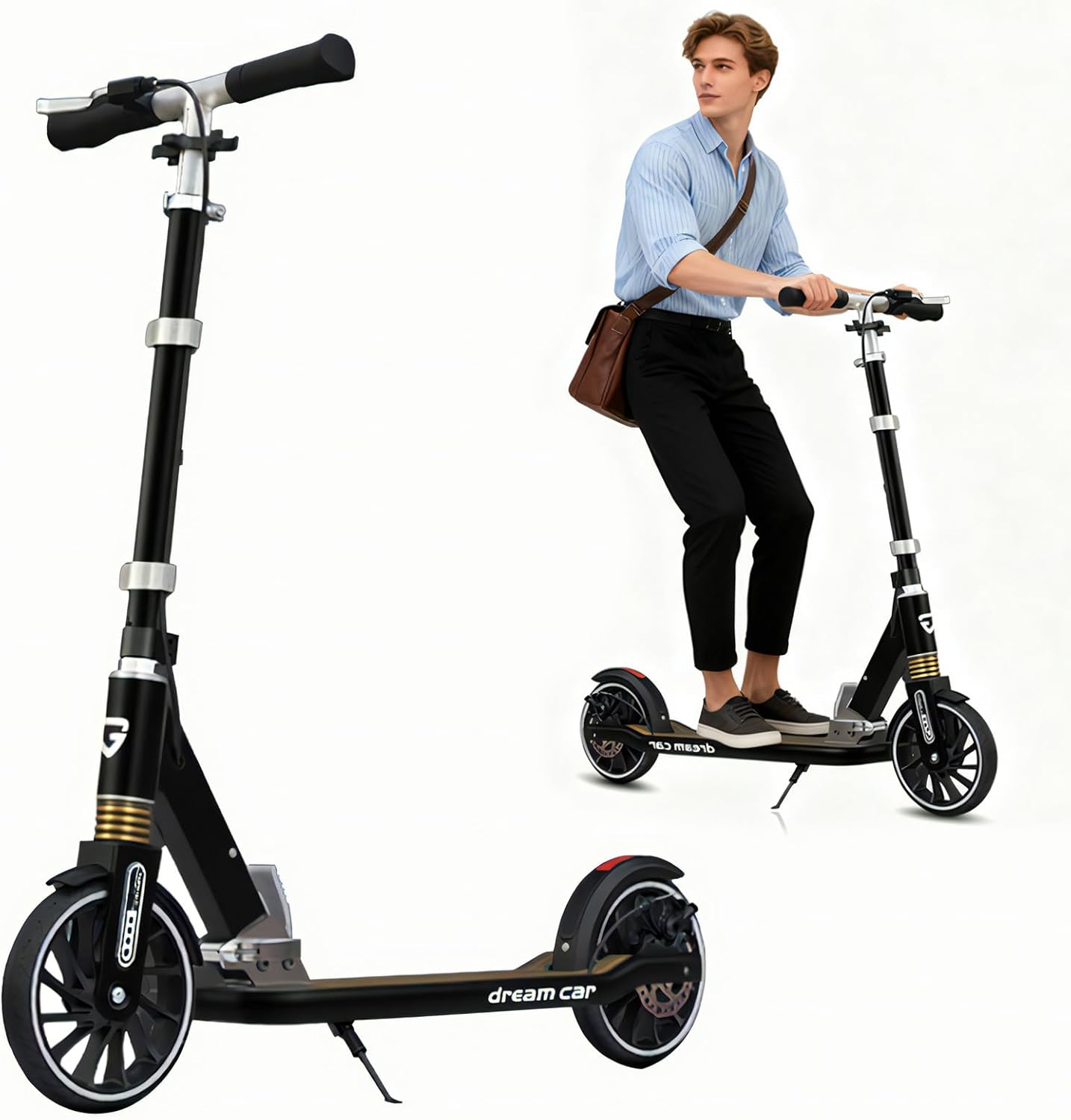 - [SHOCK ABSORBENT DESIGN]: The low profile body is easy to balance, while the upgraded version adds front wheel shocks and smooth, shock absorbing wheels for effortless cruising. Our scooters feature full contact rear brakes & hand brake system, for quick and easy stops without using a lot of force. Folding scooters provide you with the best two-wheeled riding experience!