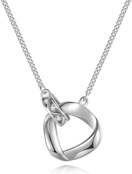 14K Gold Over S925 Sterling Silver Moissanite Double Ring Necklace for Women, Mobius Interlocking Necklaces,Gift for Mother, Wife and Girlfriend (White Gold, 14K)
