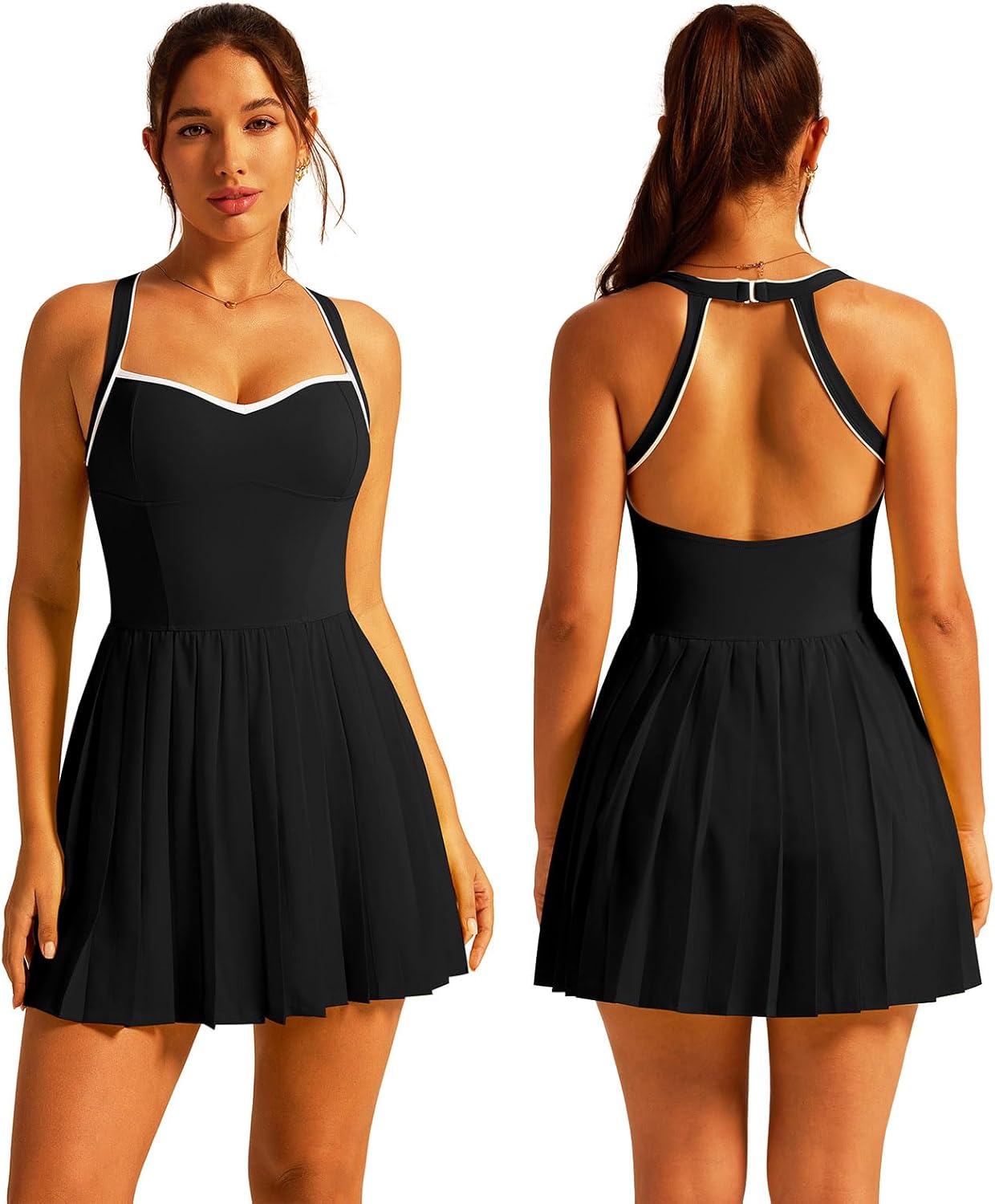Tennis Golf Dresses for Women Color Contrast Pleated with Built in Shorts and Bra