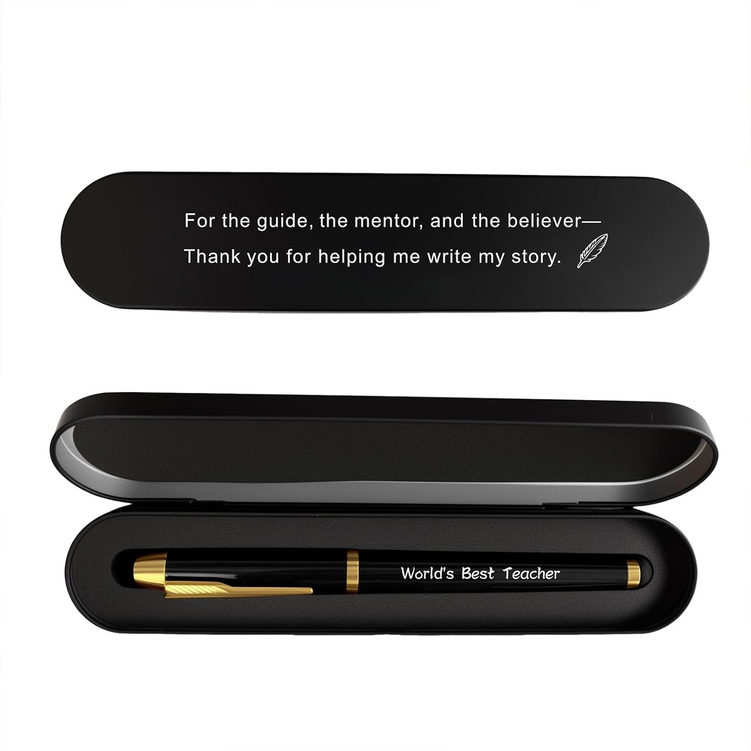 - TEACHER APPRECIATION GIFT - Premium pen set specially created for educators. The elegant metal box features the heartfelt message: "For the guide, the mentor, and the believer—Thank you for helping me write my story."