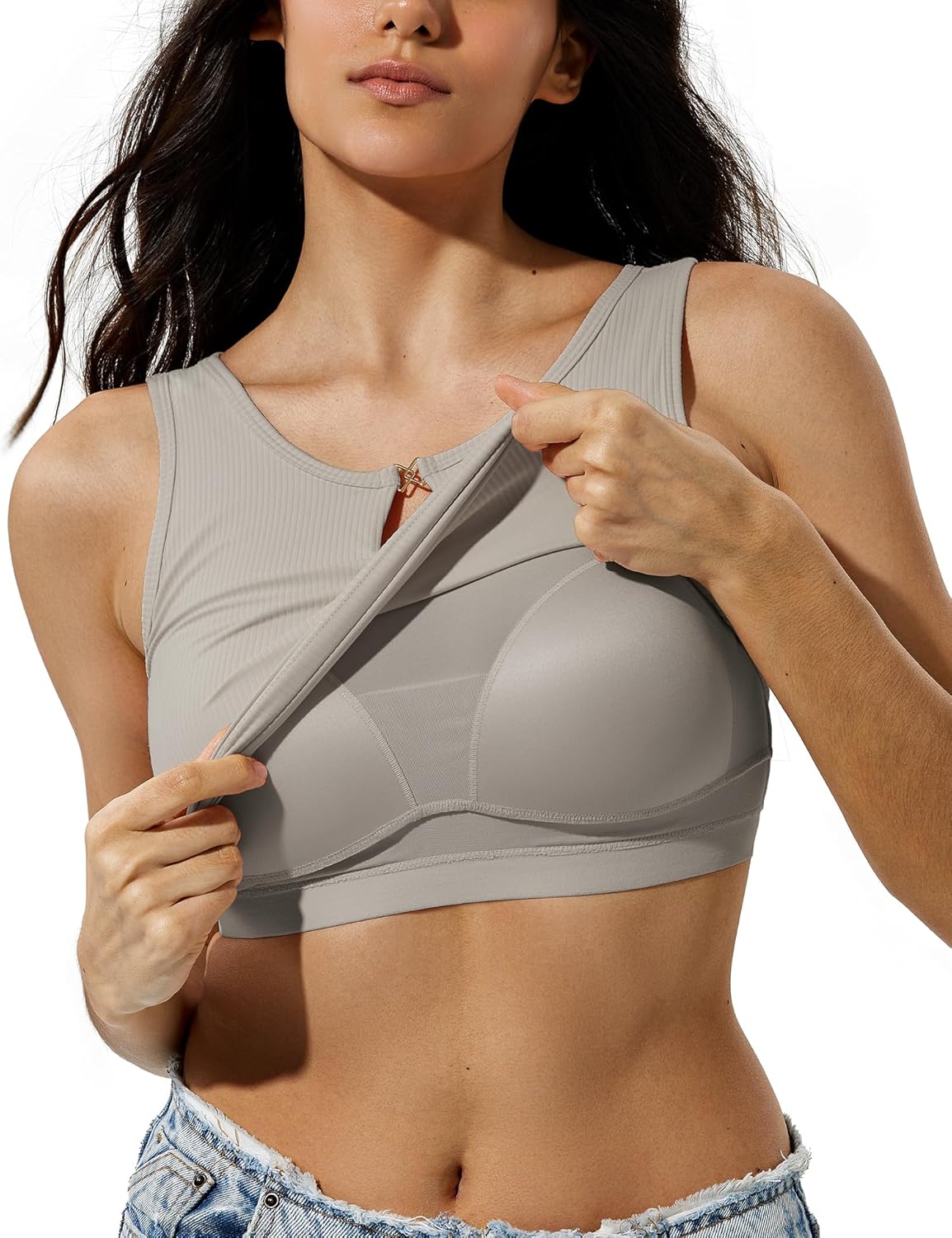 ZeroBound Built in Shelf Bra Tank Top - Keyhole Crew Neck Tank Crop Tops for Women Basics Going Out Top