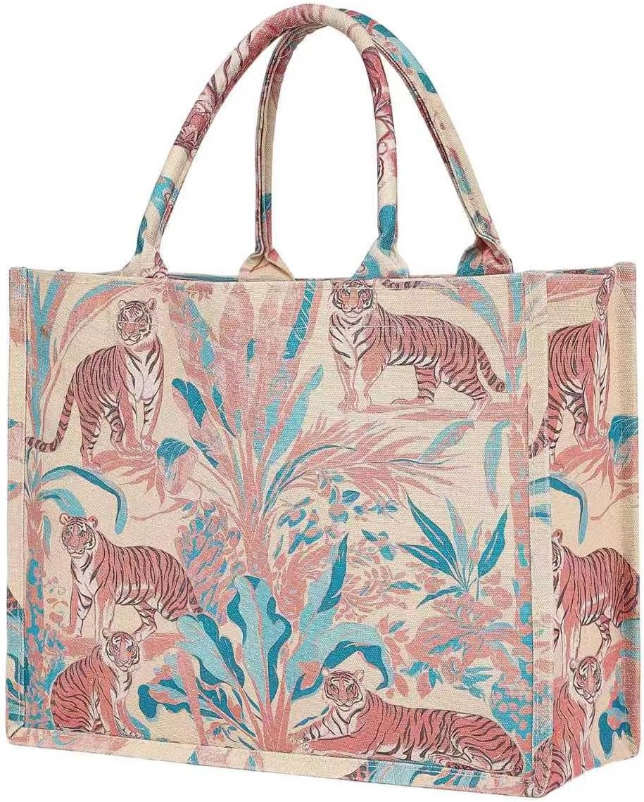 Floral Printed Tote Bag Large Capacity - Canvas Linen Blend Handbag, Shoulder Bag for Women Shopping Work Travel Bag