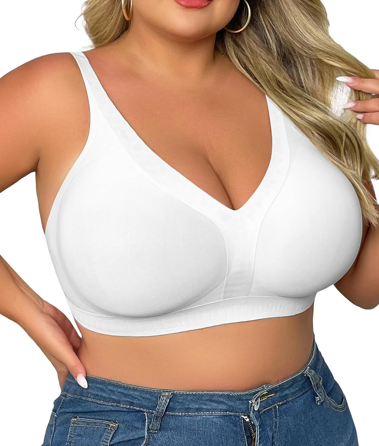 SHAPERX Women's Deep V Everyday Bras Wireless Comfort No Underwire Bralettes Soft Push Up Bra Regular and Plus Size