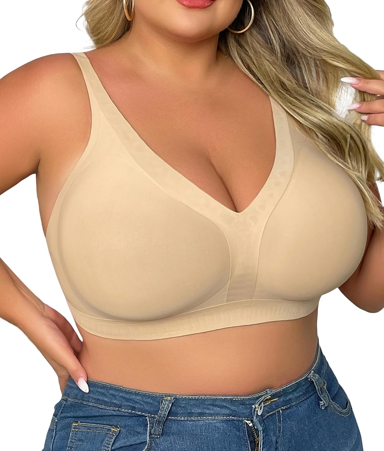 SHAPERX Women's Deep V Everyday Bras Wireless Comfort No Underwire Bralettes Soft Push Up Bra Regular and Plus Size