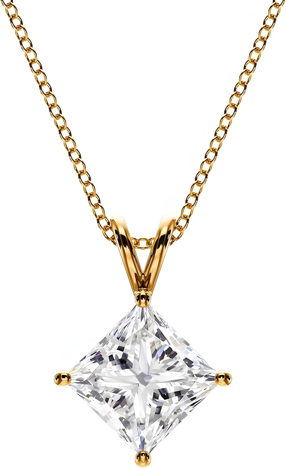 Lab-Grown Diamond Pendant Necklace for Women 14k Gold Princess-Cut Solitaire Pendant IGI Certified 0.50–2.00 Carat with 18-inch Gold Chain