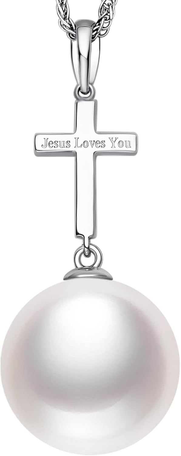 Cross Pearl Pendant Necklace, Gifts for Wife Jewelry for Women Anniversary Women Necklaces Birthday Gift Ideas, Mothers Day Valentines Christmas for Girlfriend Mom Daughter