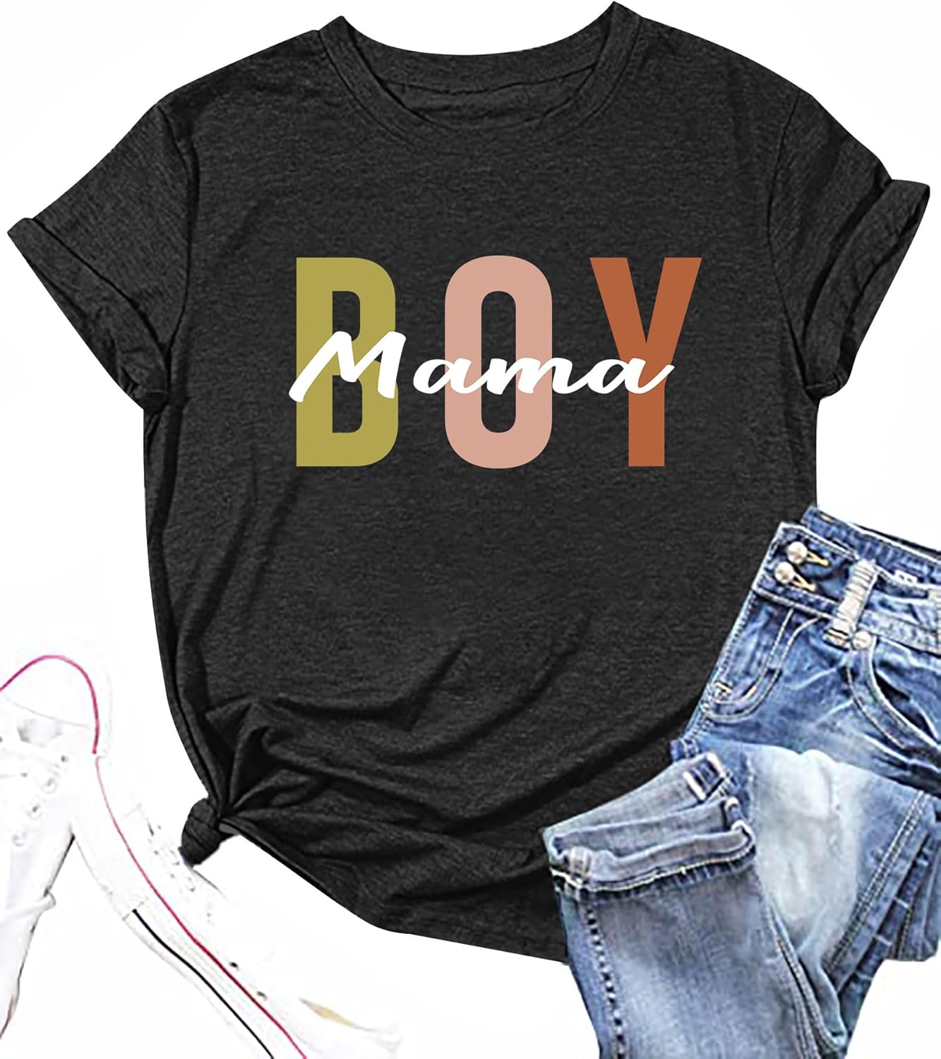 Funny Boy Mama Shirt for Women - Mom Letter Print Tshirt Boy Mom Short Sleeve Shirt Mothers Day Tee Top
