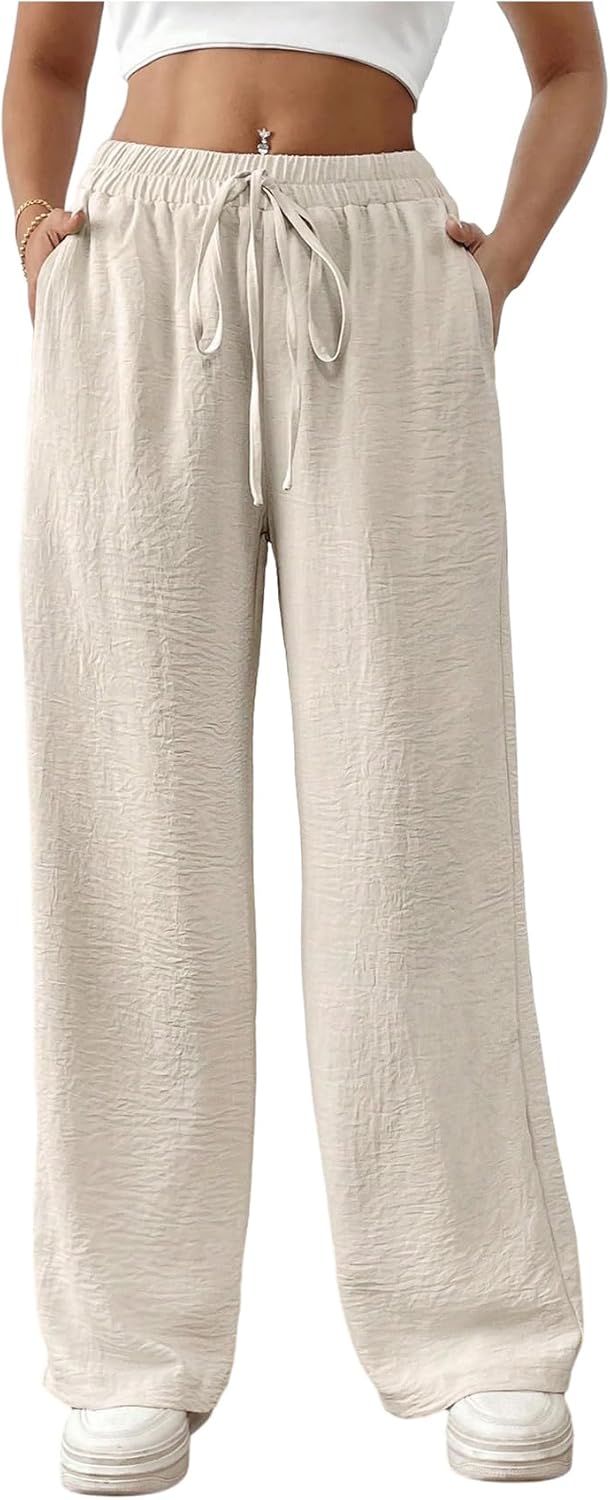 Women's Casual Wide Leg Pants Knot Front High Waisted Lounge Pants Vacation Baggy Trousers
