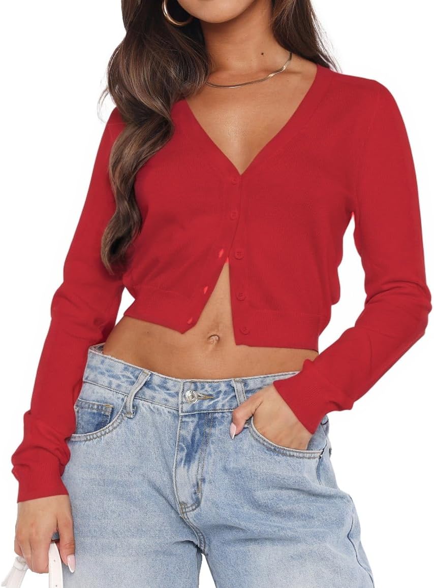 Ezbelle Women's Long Sleeve Open Front Cropped Lightweight Cardigan Sweater Button Down Shirt 2026 Fall Tops