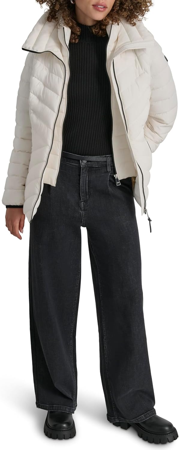 DKNY womens Bib-front Light-weight Puffer