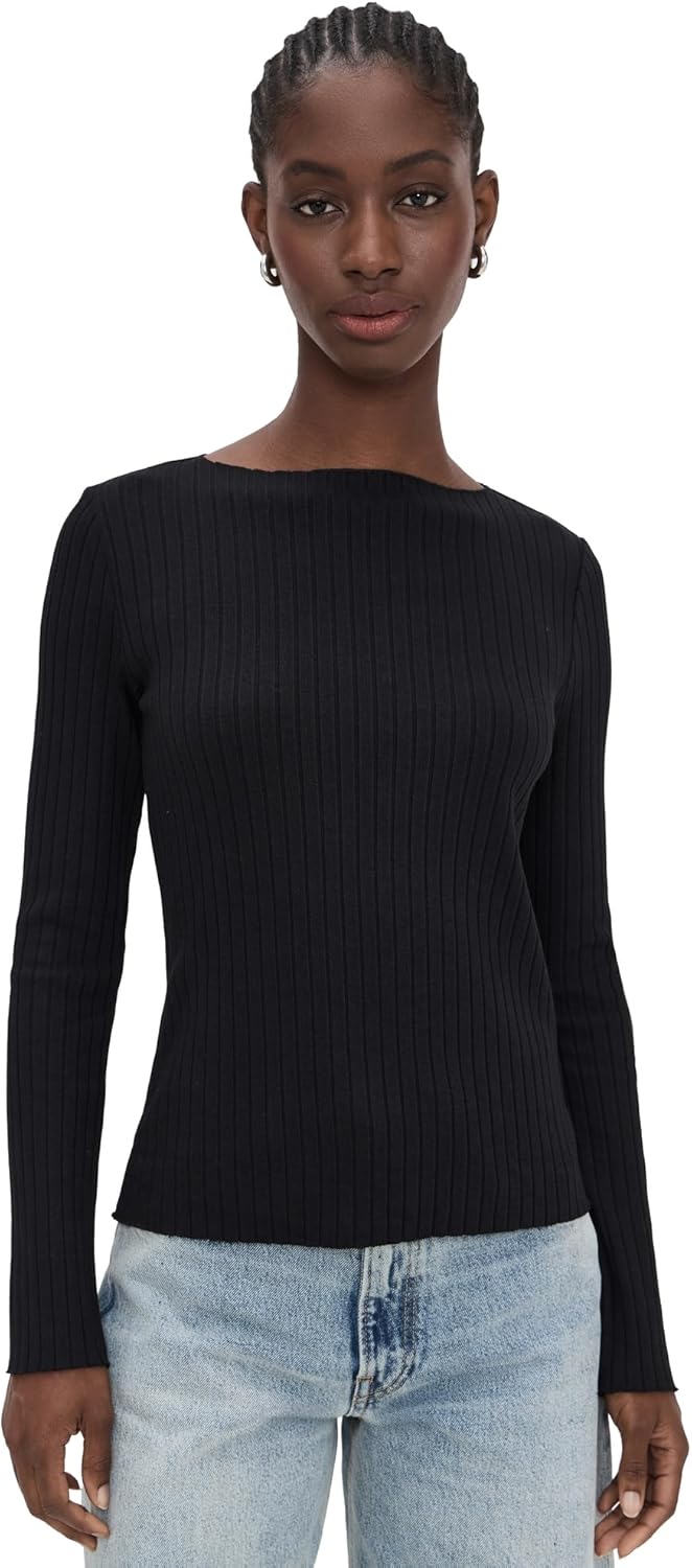 Vince Women's Rib Slash Neck Shirt, Black, S