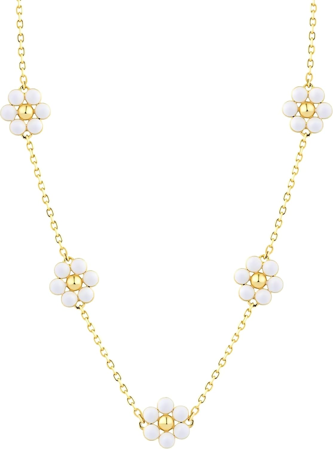 5 Daisy Flower Necklace for Women, Double-Sided Enamel Charm 14K Gold Plated S925 Sterling Silver Chain, Dainty Floral Jewelry Gift for Her, Everyday Layering Necklace