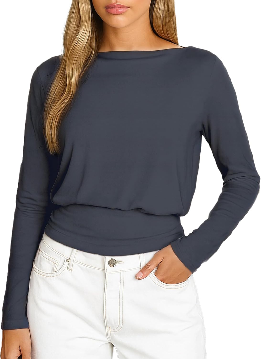 ForeFair Women's Long Sleeve Shirts Casual Crewneck Basic Going Out Tops Y2K Fall Clothes