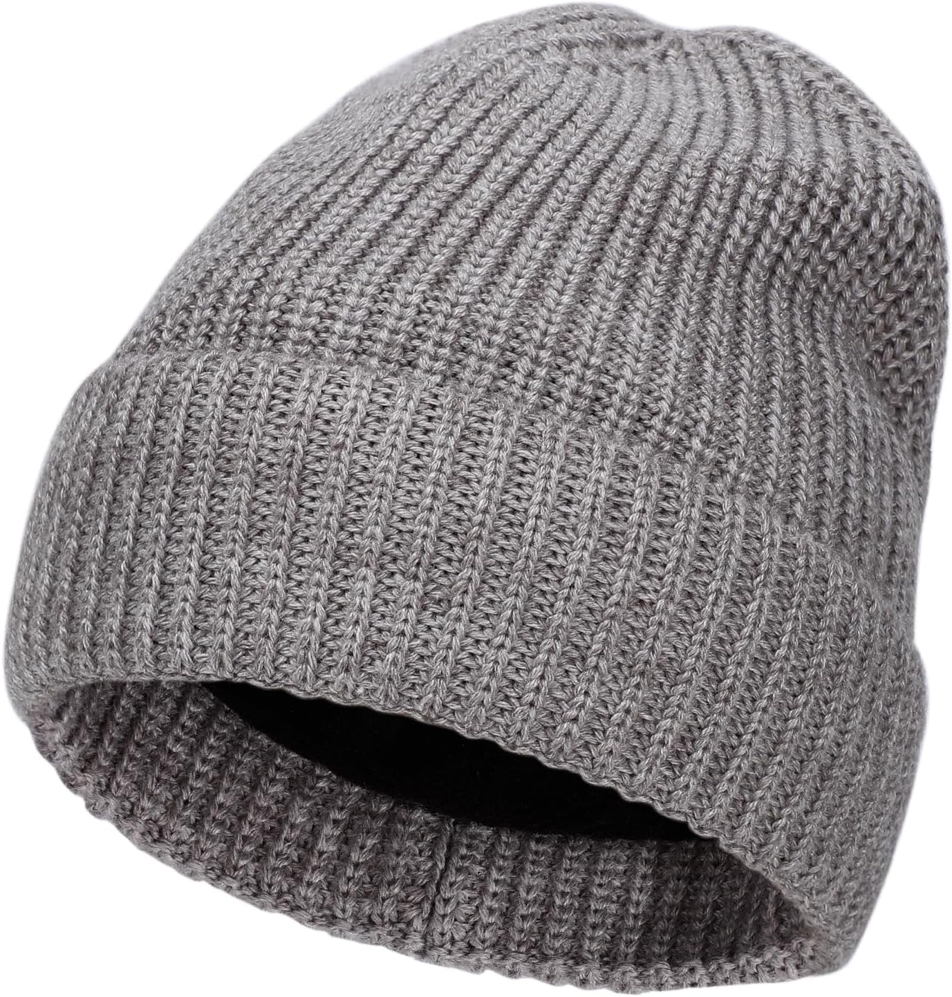 M/L/XL/XXL Merino Wool Beanie for Men & Women, Oversize Fleece Lined Warm Winter Double Layered Stylish Knit Cuffed Ski Hat