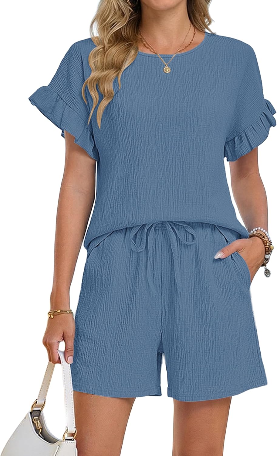 MOLERANI 2 Piece Sets for Women Summer Casual Ruffle Short Sleeve Lounge Matching Shorts Sets 2026 Travel Vacation Outfits