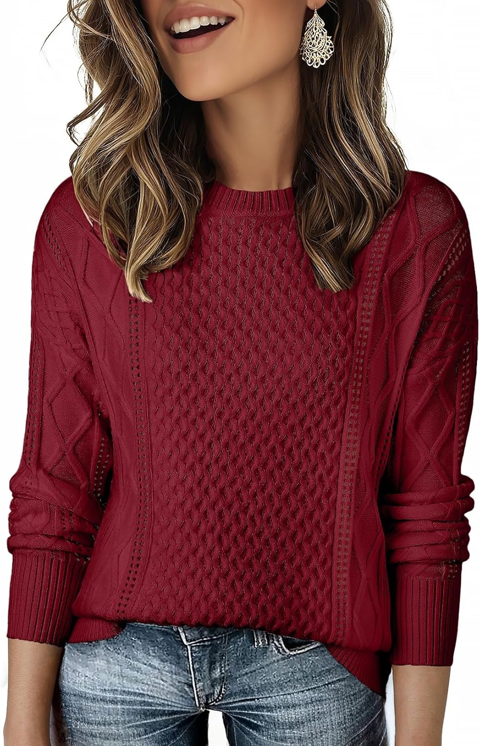 EVALESS Sweaters for Women Cable Knit Crewneck Pullover Sweater Tops Fall Winter Women's Clothing 2025