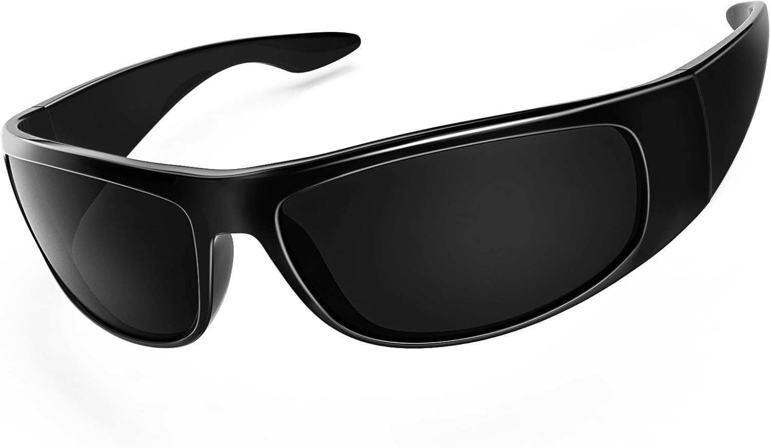 WISTON Wrap Around Sunglasses for Men Women Super Dark Blackout Sunglasses for Sensitive Eyes UV400 Protection W8005