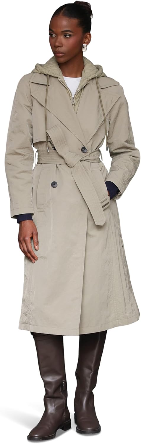Avec Les Filles womens Raglan Sleeve Trench Coat With Quilted Bib