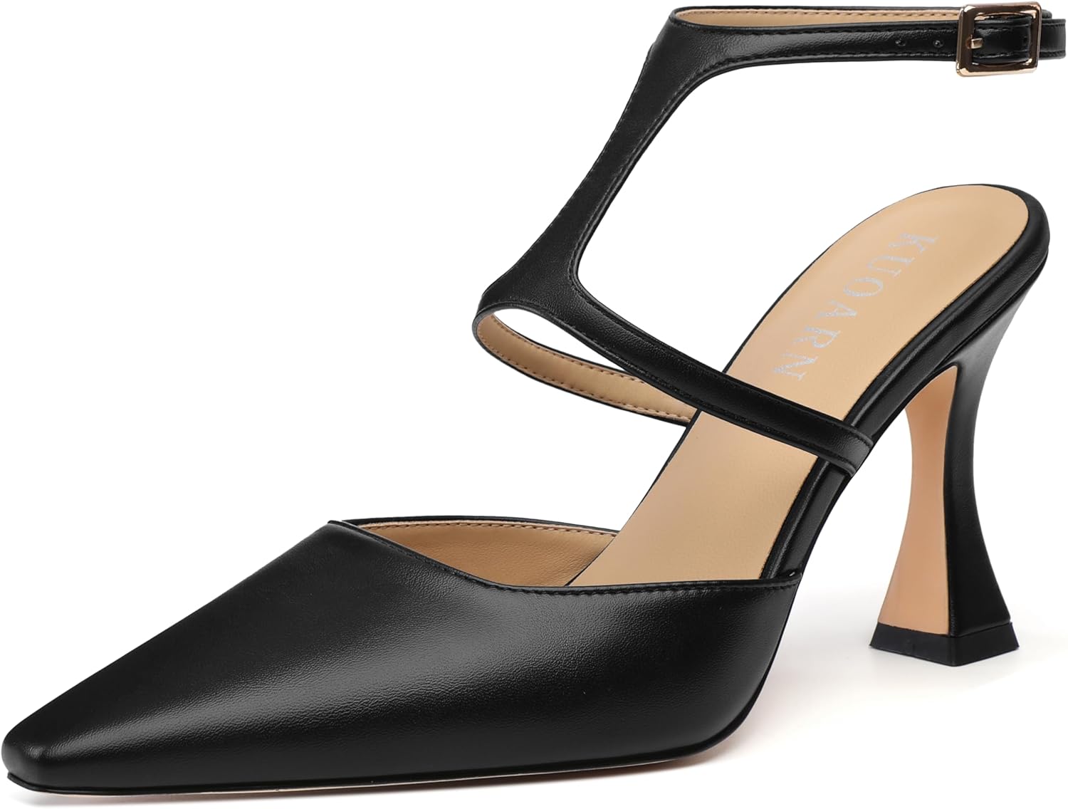 KUOARN Slingback Heels for Women Closed Toe 3.5 Inch Stiletto with Adjustable Ankle Strap Comfortable Elegant Evening Party Wedding Pumps